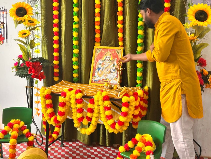देवरिया। बसंत पंचमी के अवसर पर जिले के सोंदा चौराहे स्थित ग्लोबल मार्क स्कूल एवं दी आई स्कूल में वैदिक मंत्र उच्चारण के साथ मां सरस्वती का पूजन अर्चन किया गया। जिसमें विद्या की देवी मां सरस्वती के प्रसाद को बच्चों में वितरित किया गया। इस आयोजित पूजा कार्यक्रम में समस्त विद्यालय स्टाफ एवं बच्चों ने मां सरस्वती की चित्र के ऊपर फूल चढ़ाकर पूजा अर्चना की एवं अपने अच्छे भविष्य की कामना की।