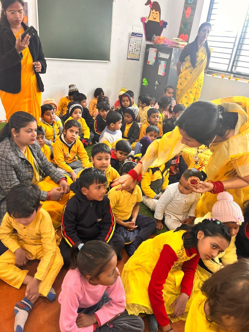 मां सरस्वती के पूजन के उपरांत सभी बच्चों को तिलक लगाते हुए प्रसाद वितरण कर पूजन कार्यक्रम को सम्पन्न कराया गया। इस अवसर पर प्रिंसिपल शुभांगी सिंह, मैनेजर आकाश सिंह, आभा शुक्ला, निकिता सिंह, अंजलि द्विवेदी, अनामिका राय, प्रिया मिश्रा, कृति मिश्रा के साथ ही सभी अध्यापक गण मौजूद रहे।