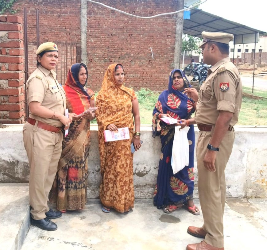 देवरिया। उत्तर प्रदेश शासन द्वारा महिलाओं एवं बालिकाओं के सुरक्षार्थ व स्वावलंबन हेतु चलाए जा रहे मिशन शक्ति अभियान फेज-05 के तहत पुलिस अधीक्षक देवरिया विक्रान्त वीर के निर्देशन में जनपद देवरिया के थाना सुरौली की मिशन शक्ति टीम के उ0नि0 श्री ज्ञान सिंह पटेल, आरक्षी अभयनाथ यादव, आरक्षी वरुण कुमार व महिला आरक्षी अंजली तिवारी द्वारा थाना क्षेत्रान्तर्गत महिलाओं/बालिकाओं को मिशन शक्ति फेज-5 के तहत सरकार द्वारा जारी विभिन्न हेल्पलाइन नम्बरों जैसेः- डॉयल-112, हेल्प लाइन-181, वुमेन पावर लाइन-1090, चाइल्ड हेल्प लाइन-1098, सी0एम0 हेल्पलाइन-1076, वन स्टॉप सेन्टर-181, स्वास्थ्य सेवा हेल्पलाइन-102, एंबुलेंस सेवा-108 आदि के विषय में जानकारी देकर जागरुक किया।