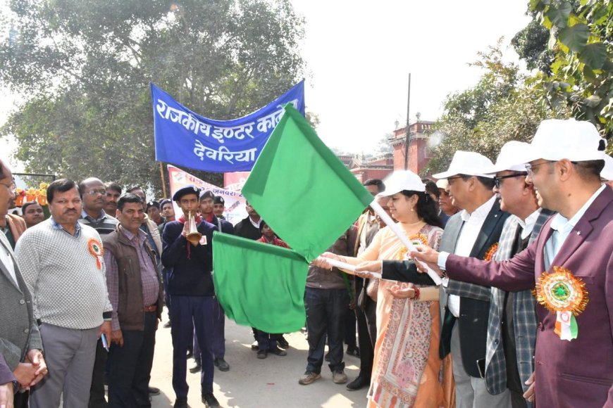 देवरिया। राष्ट्रीय मतदाता दिवस के अवसर पर मतदाताओं को जागरूक करने के उद्देश्य से जिला निर्वाचन अधिकारी/जिलाधिकारी दिव्या मित्तल ने स्कूली विद्यार्थियों की जागरूकता रैली को हरी झंडी दिखाकर रवाना किया। डीएम की अगुवाई में पुलिस अधीक्षक विक्रांत वीर रैली में शामिल हुए। यह रैली डीएम आवास से जलकल रोड होते हुए वापस जीआईसी परिसर पहुंची। रैली में छात्रों ने मतदान के महत्व को लेकर जनसामान्य को जागरूक किया और उन्हें मतदान के लिए प्रेरित किया।