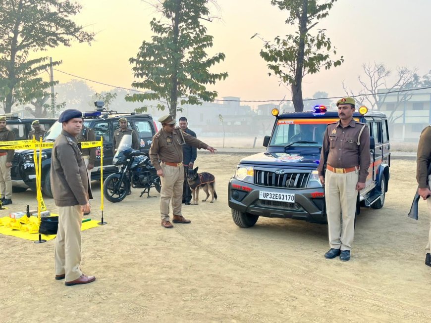 जनपद के पुलिस लाइन में 27 दिसंबर को पुलिस अधीक्षक देवरिया विक्रान्त वीर द्वारा रिजर्व पुलिस लाइन में शुक्रवार की साप्ताहिक परेड की ली गयी सलामी तथा परेड का निरीक्षण किया गया। इस दौरान पुलिस बल के शारीरिक व मानसिक रूप से फिट रहने के लिए समस्त पुलिसकर्मियों से दौड़ लगवायी गयी एवं अनुशासन व एकरूपता बनाए रखने के लिए ड्रिल करवाया गया। परेड में प्रभारी निरीक्षक कोतवाली, प्रभारी निरीक्षक रामपुर कारखाना, प्रभारी निरीक्षक भलुअनी, थानाध्यक्ष खुखुन्दू, थानाध्यक्ष गौरीबाजार तथा थानाध्यक्ष भटनी मय हमराह सहित पुलिस लाईन का पुलिस बल तथा विभिन्न कार्यालयों में नियुक्त पुलिसकर्मी सम्मिलित हुए ।