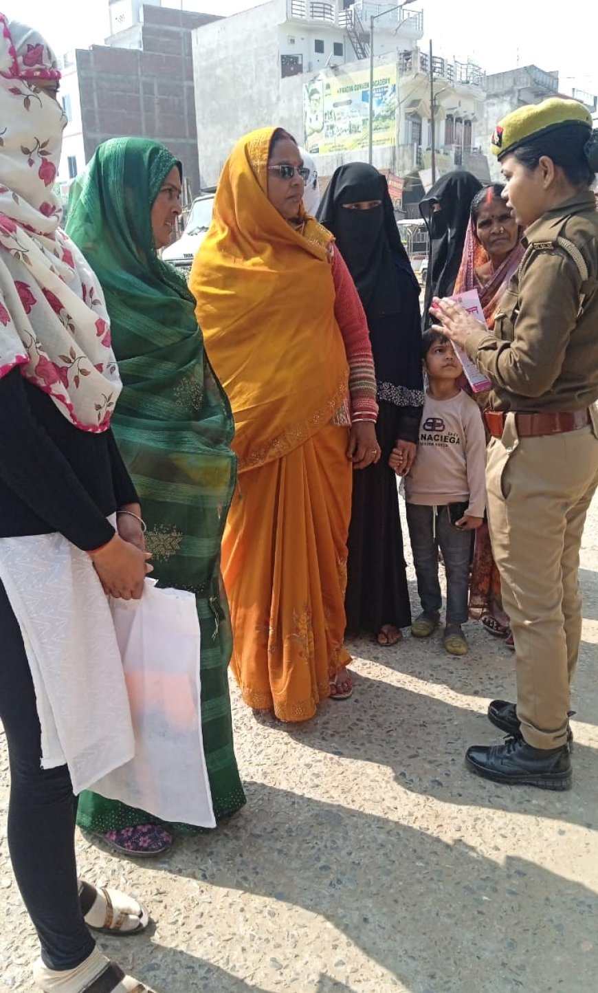 महिलाओं एवं बलिकाओं को वितरित किये गये टेम्पलेट व विभन्न हेल्पलाइन नम्बरों से अवगत कराया गया।