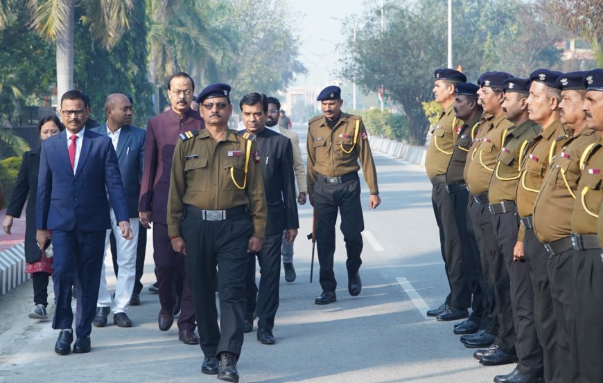 कार्यक्रम के पूर्व सुरक्षाकर्मियों ने गार्ड ऑफ ऑनर दिया और उन्होंने अधिकारियों और कुलानुशासक प्रो. राजकुमार के साथ परेड का निरीक्षण किया ।