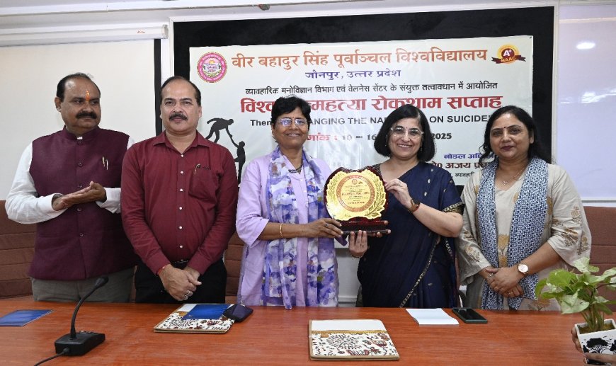 जौनपुर। वीर बहादुर सिंह पूर्वांचल विश्वविद्यालय के व्यावहारिक मनोविज्ञान विभाग एवं वेलनेस सेंटर के संयुक्त तत्वावधान में विश्व आत्महत्या रोकथाम सप्ताह का समापन संकाय भवन के कॉन्फ्रेंस हॉल में हुआ। इस अवसर पर विभिन्न प्रतियोगिताओं के प्रतिभागियों को पुरस्कृत किया गया और युवाओं को सकारात्मकता के साथ जीवन जीने का संदेश दिया गया।