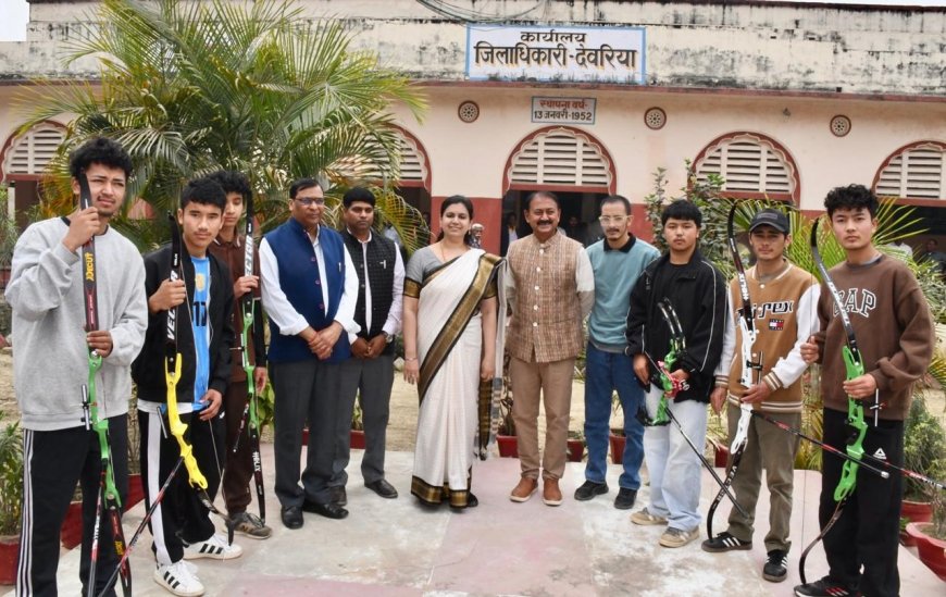 लद्दाख के तीरंदाजों को देवरिया की डीएम दिव्या मित्तल ने सौंपे आधुनिक धनुष