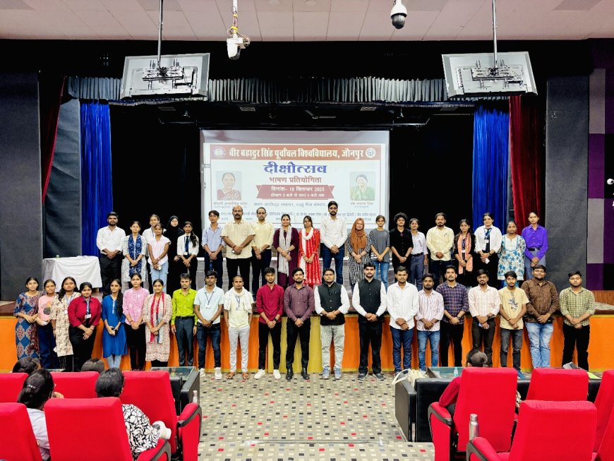 जौनपुर। वीर बहादुर सिंह पूर्वांचल विश्वविद्यालय में दीक्षोत्सव के अवसर पर "सोशल मीडिया: सुविधा या साजिश" विषय पर भाषण प्रतियोगिता का आयोजन किया गया। विश्वविद्यालय के आर्यभट्ट सभागार में आयोजित इस कार्यक्रम में विभिन्न संकायों के 35 विद्यार्थियों ने भाग लिया और सोशल मीडिया के प्रभावों पर अपने विचार व्यक्त किए। कार्यक्रम का आयोजन विश्वविद्यालय की कुलपति प्रो. वंदना सिंह के मार्गदर्शन में सम्पन्न हुआ। प्रतिभागियों ने सोशल मीडिया से जुड़ी सकारात्मक और नकारात्मक दोनों ही पहुलुओं पर चर्चा की। अधिकांश वक्ताओं ने इस बात पर बल दिया कि आज के समय में सोशल मीडिया एक सशक्त माध्यम तो है, लेकिन इसके अत्यधिक और असावधानीपूर्ण प्रयोग से व्यक्ति को मानसिक, सामाजिक और भावनात्मक नुकसान भी उठाने पड़ सकते हैं।