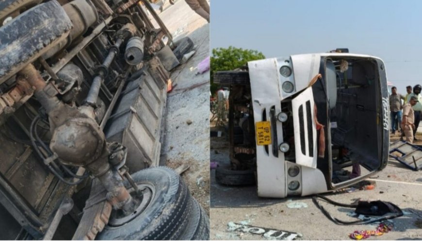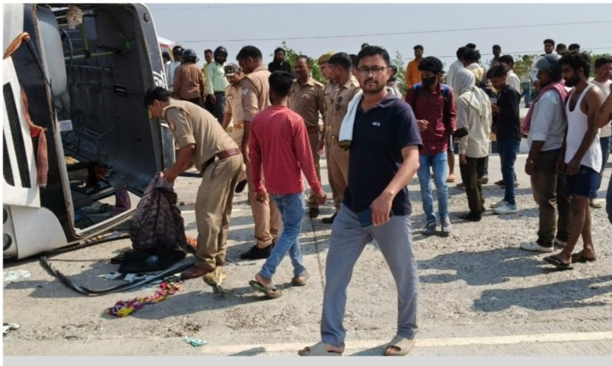 हाइवे पर बस पलटी, चार यात्रियों की मौत, एक दर्जन से ज्यादा घायल
